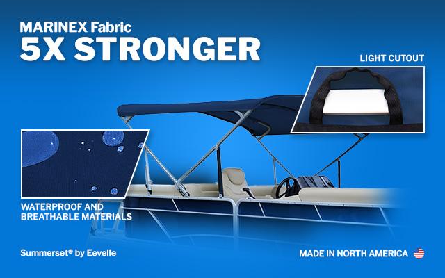 Summerset fabric is a high quality marine grade product that promotes mildew resistance that offers extreme durability. Summerset bimini frames have thick wall 1" SuperTrude extruded aluminum that out performs the standard 7/8" tubing used in lower quality frame sets. All Summerset bimini tops are backed by a 3 year warranty that includes a matching storage boot to protect your bimini canvas when not in use.